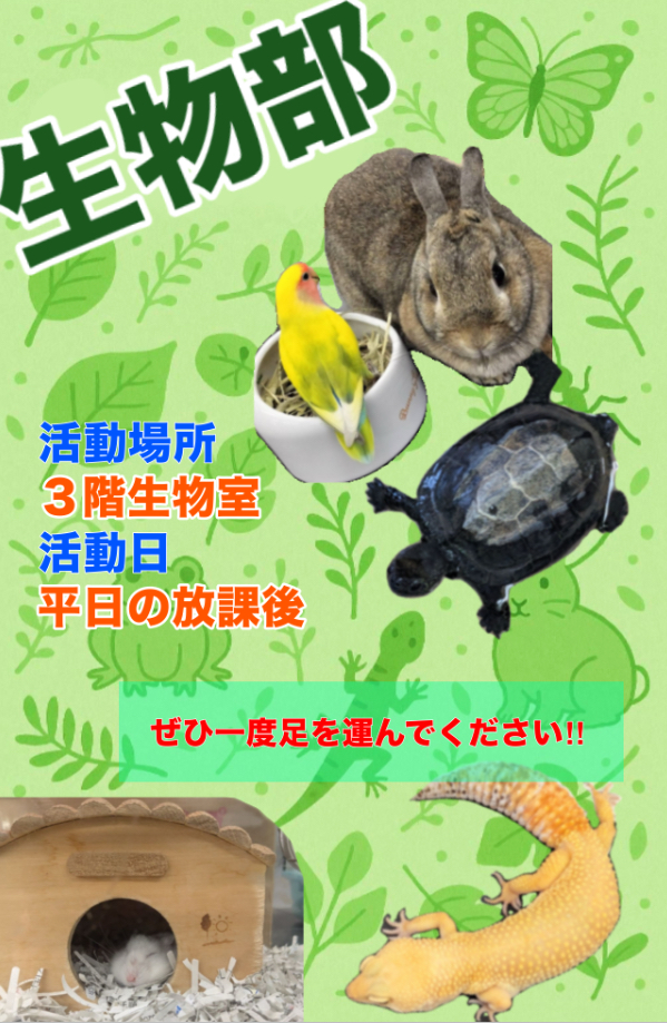 よかったら、気軽に生物部をのぞいてみてくださいね🐤生物部 写真ぎゃらりぃ